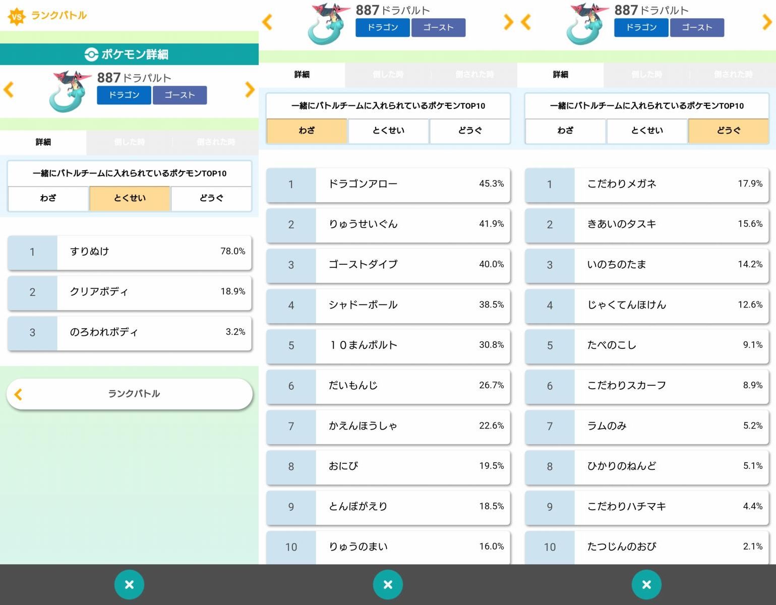 メロメロドラパルト出した試合(=相手のパーティに♂エースバーンがいた試合)エースバーンをハメて全勝、メロメロドラパルトを出さなかった試合(=相手のパーティにエースバーンがいなかった試合)全敗。ポケモンが壊れた。